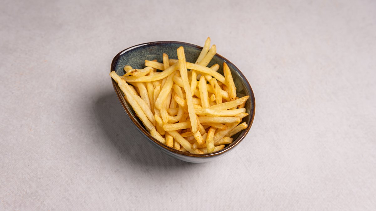 100 g mięsa, frytki lub pieczone ziemniaki, surówka z warzyw sezonowych