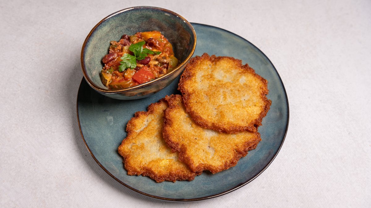Placki ziemniaczane 3 sztuki, gulasz wegetariański