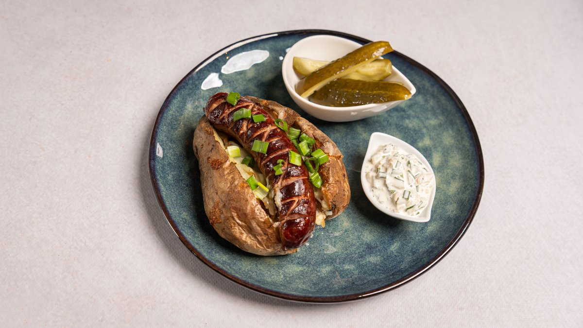 Masło, kiełbasa, cebula, ogórek konserwowy, szczypiorek, sos tatarski, surówka