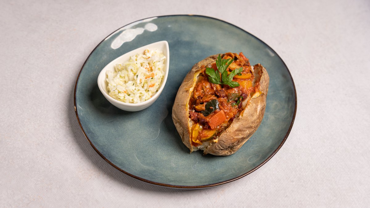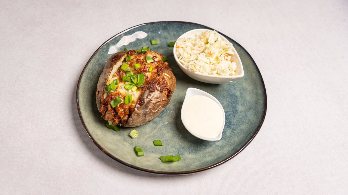 2 szt. Ziemniaki, mięso wieprzowe, okrasa, majeranek, surówka z warzyw sezonowych