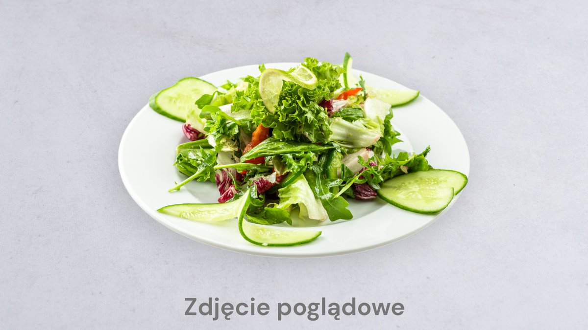 Pomidorki koktajlowe, mix sałat, sos vinegrette