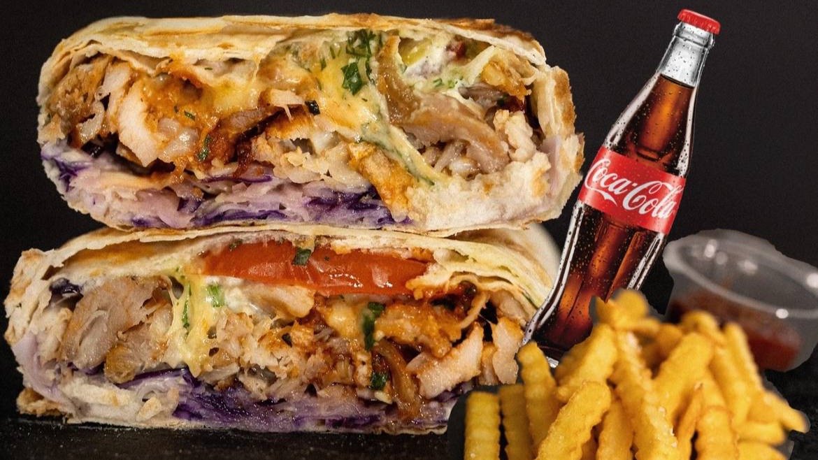 Shawarma standard 150 gr. mięsa, frytki 100 g, cola 0,33
