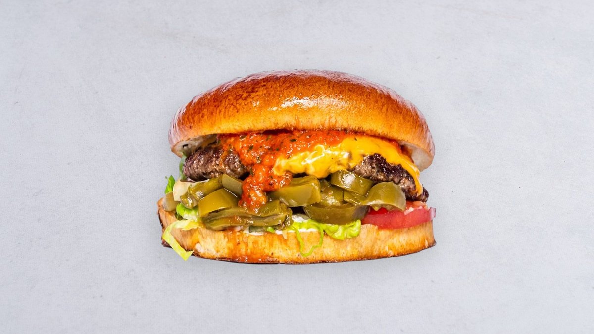 Wołowina, cheddar, sałata rzymska, jalapeño, kaktus, mięta, ajwar pikantny, sos śmietankowy