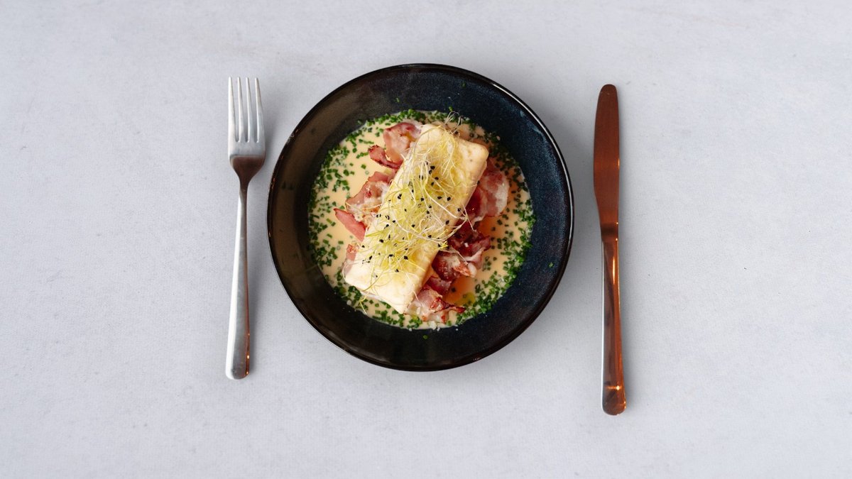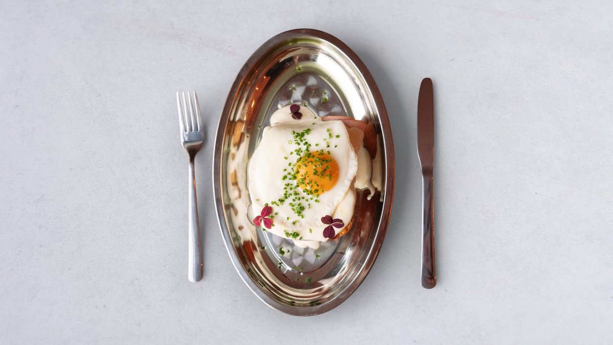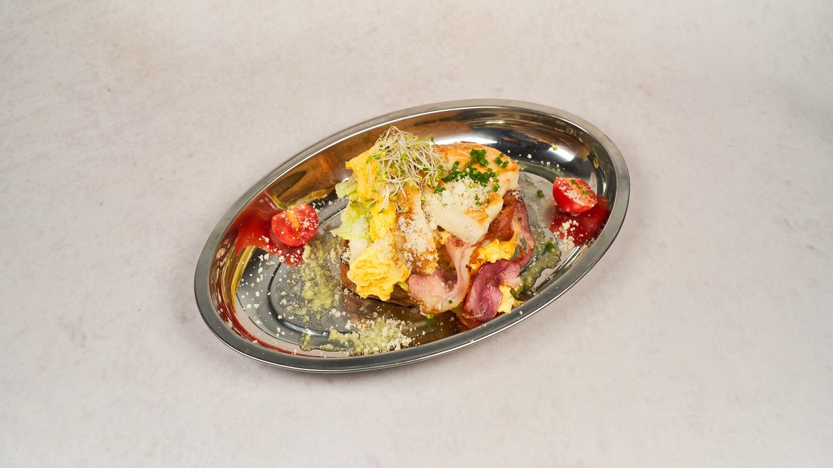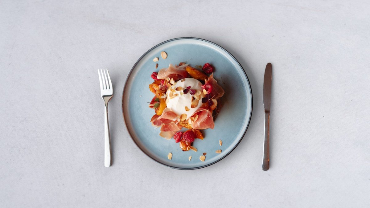 Tost z jamonem, burratą i grillowaną brzoskwinią