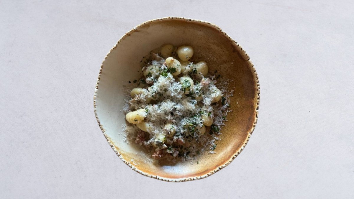 Domowe Gnocchi w towarzystwie boczniaków, portobello, włoskiej salsicci oraz suszonych podgrzybków w autorskim sosie z mascarpone i grana padano.