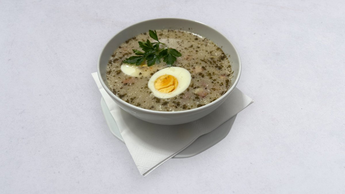 Rosół drobiowo-wołowy podawany z domowym makaronem
