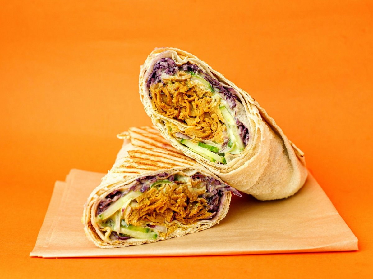 Grillowana pita od Ali Baby wypełniona wysokobiałkowym seitanem, kimchi, marchwią imbirową, czerwoną kapustą, czerwoną cebulą, polane sosem sweet chili i czosnkowo-pietruszkowym. Dla fanów smaków słodko-kwaśnych.