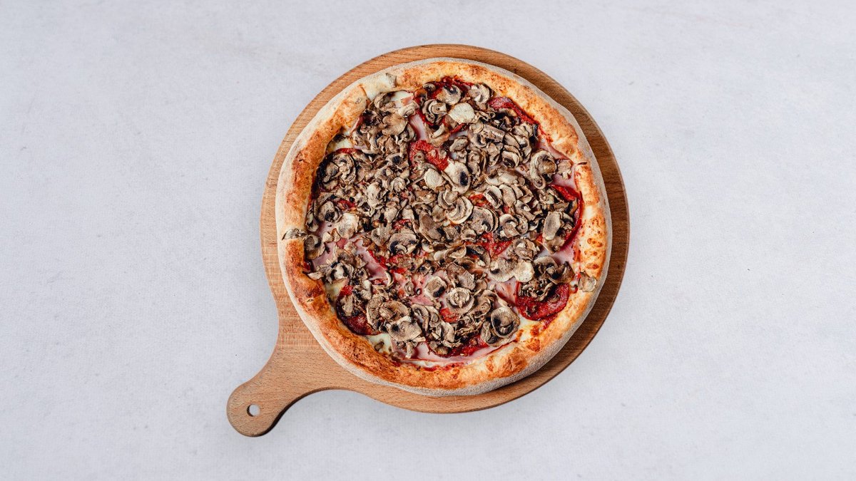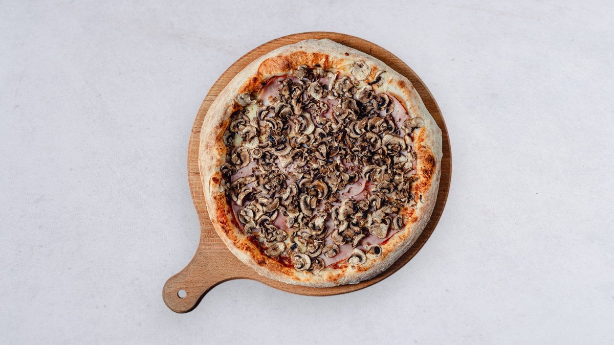 Sos, ser, szynka, pieczarki
