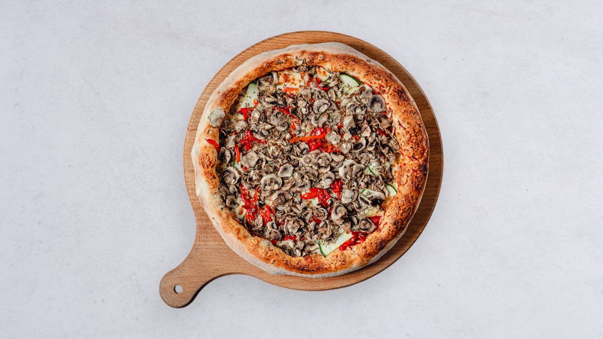 Sos, ser, cukinia, papryka konserwowa, pieczarki, oregano, czosnek