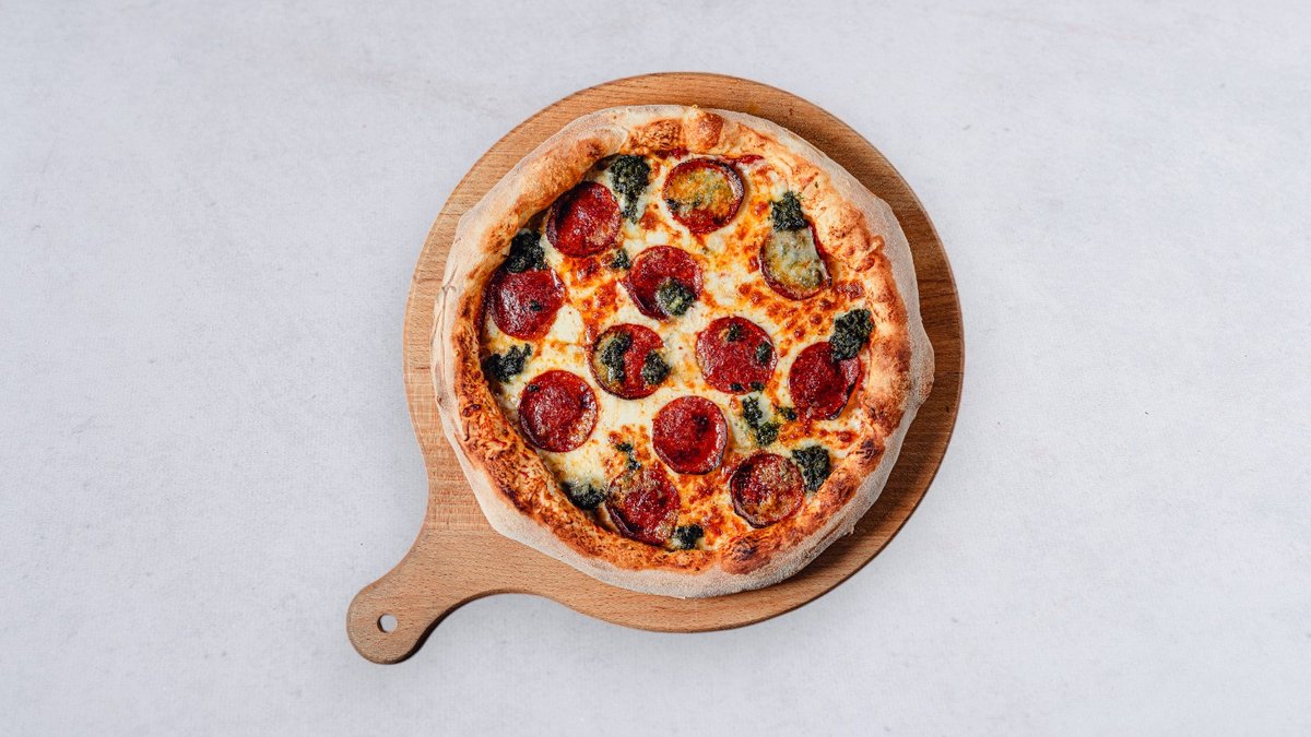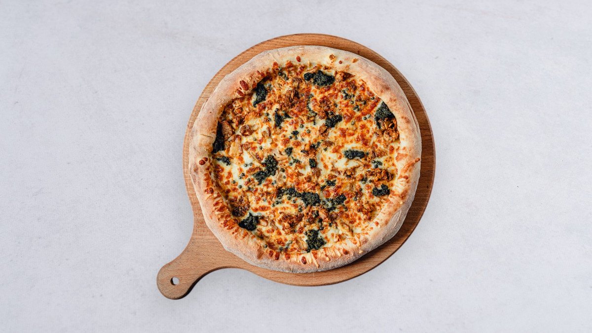 Sos, ser, salami pepperoni, szpinak, ser pleśniowy