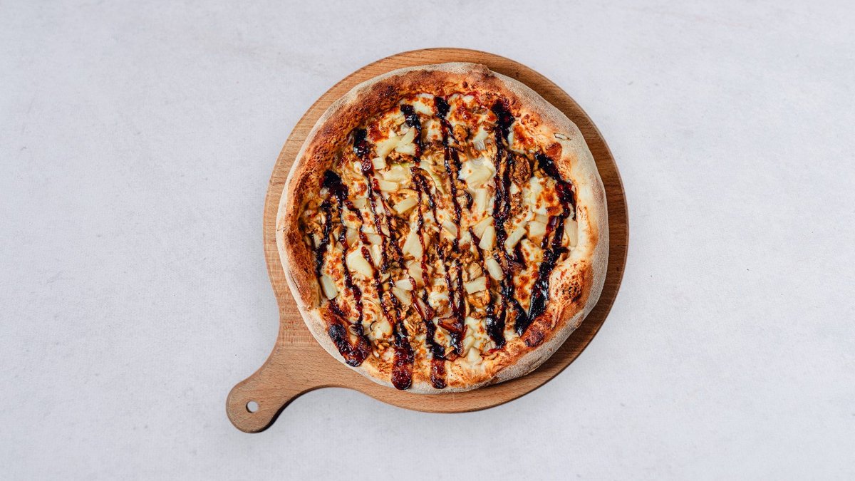 Aromatycznie doprawiona szarpana wieprzowina, chutney z ananasa i jalapeño, ser, sos BBQ