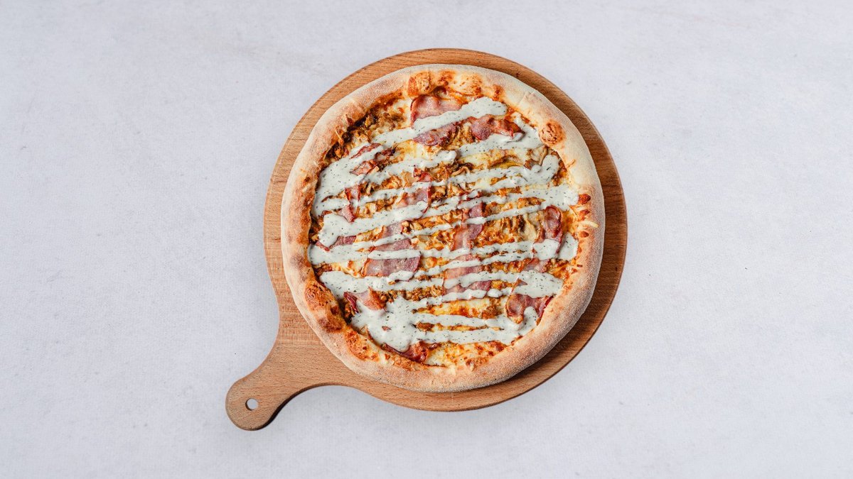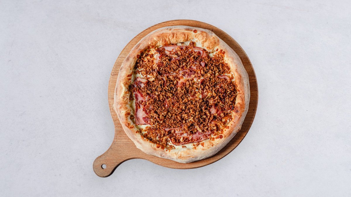 Śmietanka, ser, szynka, boczek, prażona cebulka