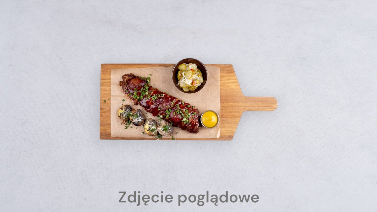 Marynowane żeberka w sosie jack daniels, pieczone ziemniaki, mix świeżych warzyw z vinegrette
