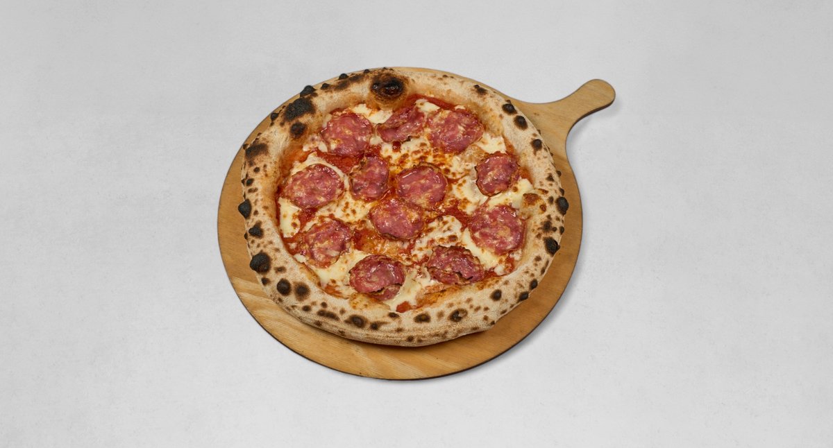 Sos pomidorowy, mozzarella fior di latte, salame spianata piccante