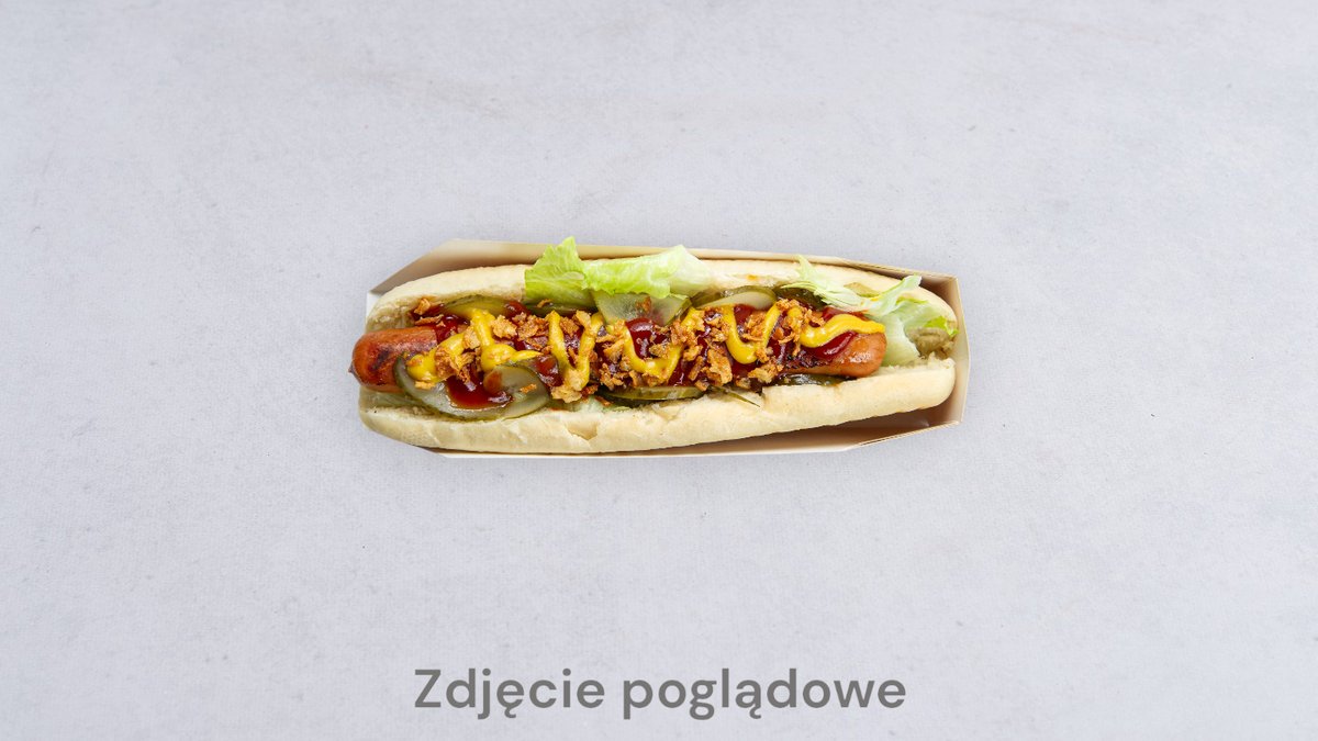 Bułka, 2 kotlety, papryczka chilli, ser, pomidor, ogórek, cebula, sos