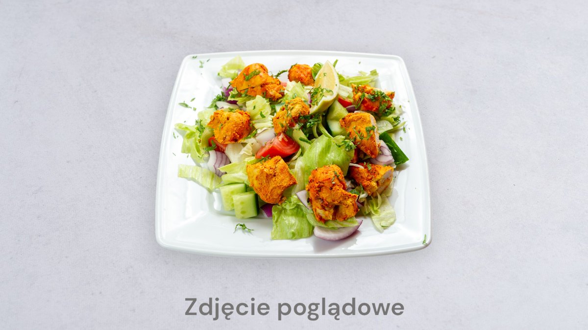 Sałatka z kurczakiem / wołowina mięso, sos, surówka, oliwki, ser feta, jalapeño, pomidor, ogórki