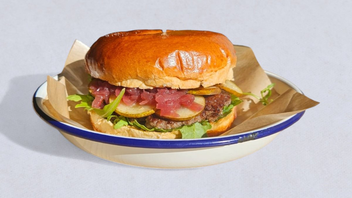 Morowe burgerki w maślanej bule z podwójnym mięsem.