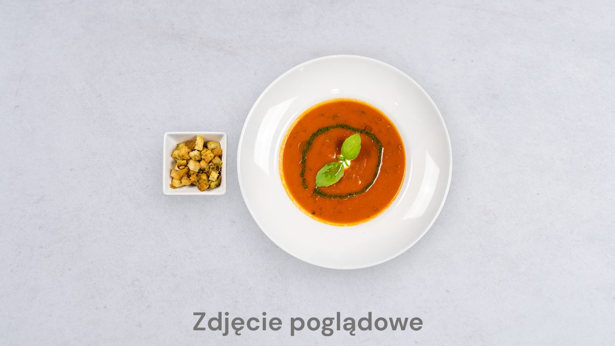 Krem z pomidorów i pieczonej papryki z oliwą pietruszkową 250ml