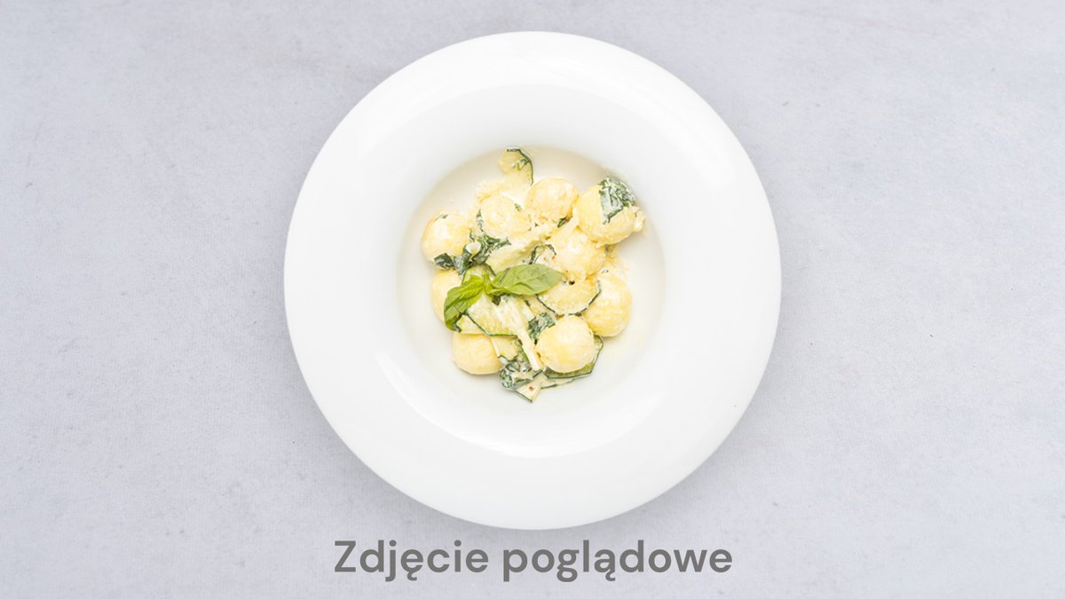 Puszyste kluski ziemniaczane z delikatnym kurczakiem w kremowym sosie serowym
