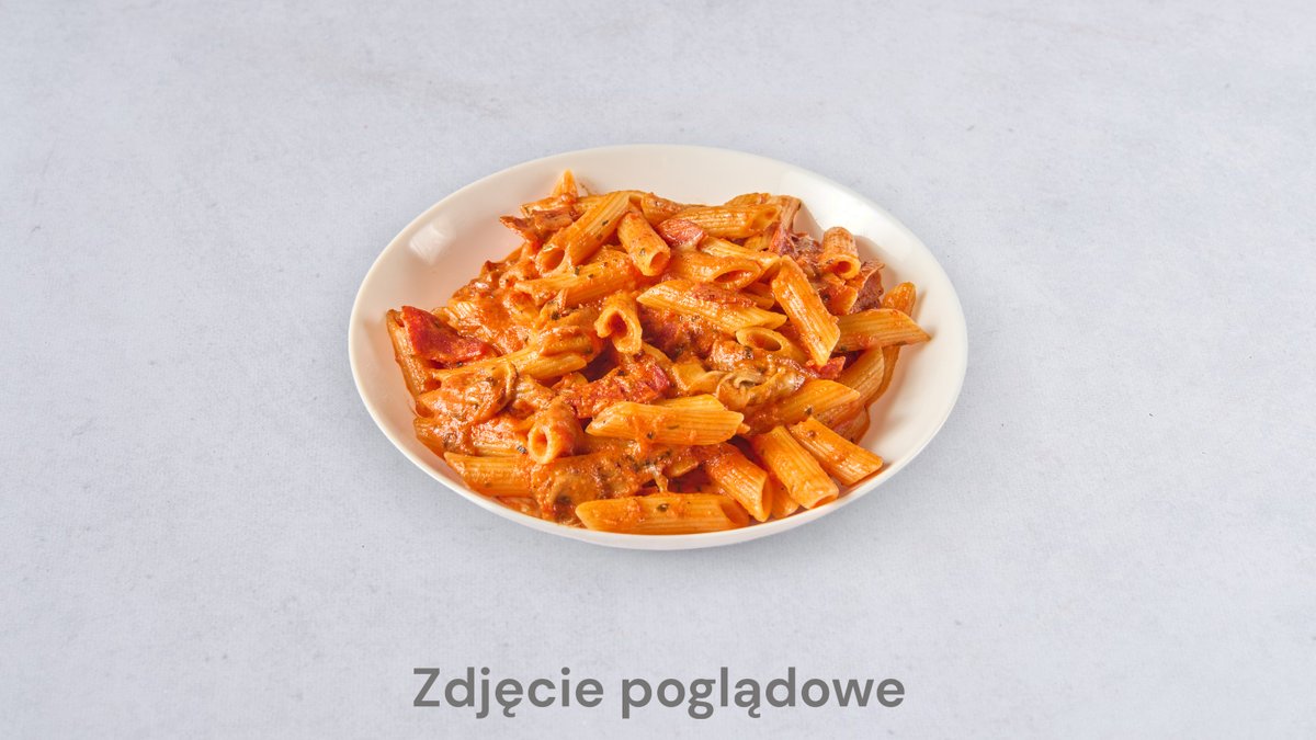 Delikatny makaron rigatoni w łagodnym sosie z bazylią i startym Grana Padano
