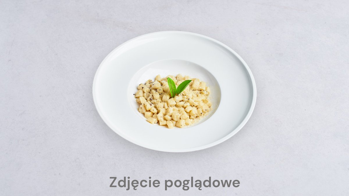 Ryż carnarolli, pasta truflowa, prosciutto crudo, białe wino, cebula, masło, świeża szałwia, parmigiano reggiano dop