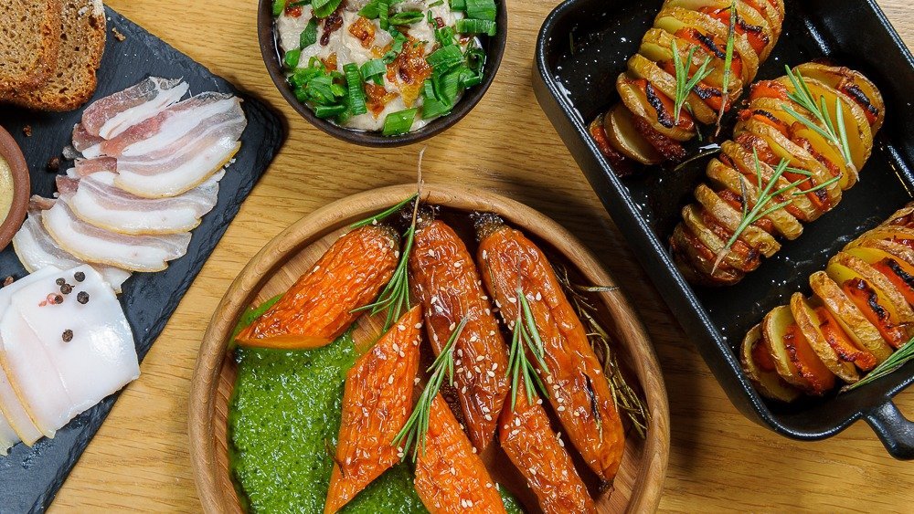Przystawka z pieczonych bakłażanów, papryki i marchwi