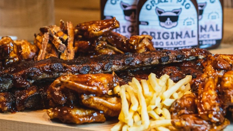 Żeberka serwowane są do wyboru w naszym oryginalnym sosie BBQ lub sosie musztardowym BBQ