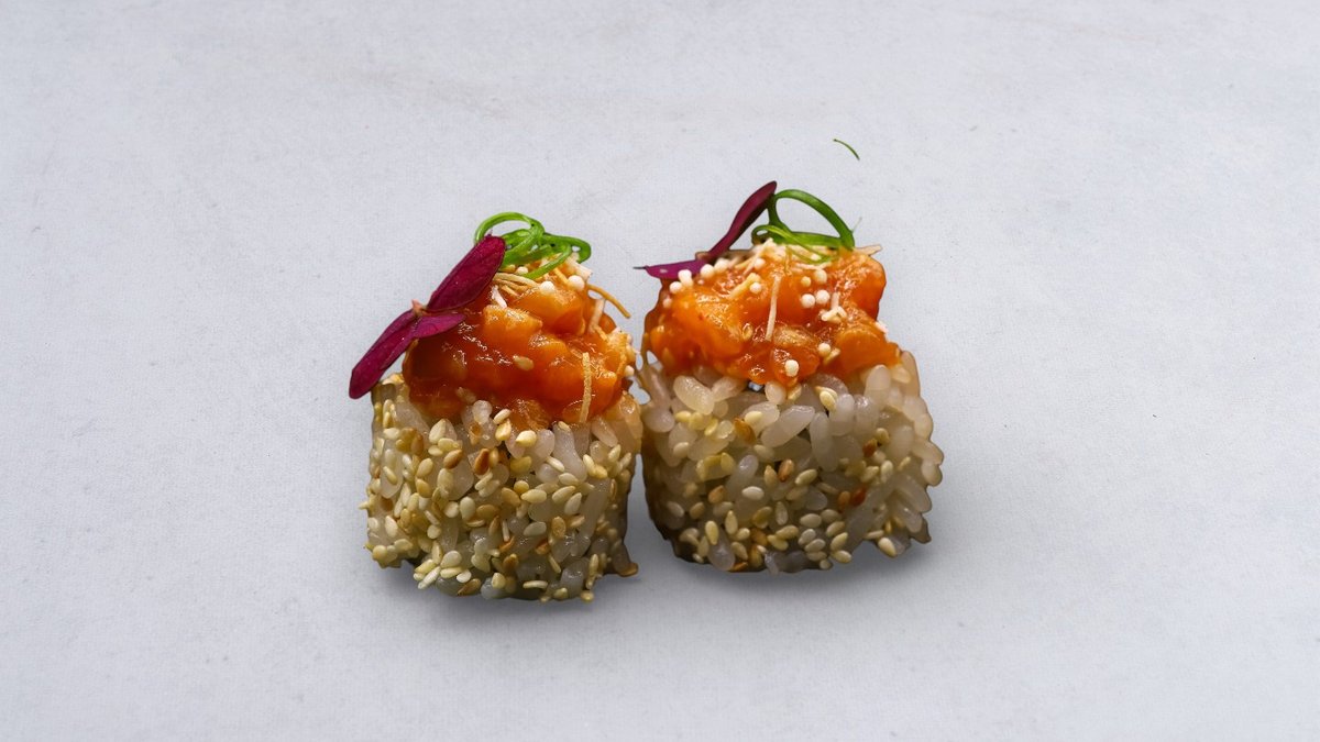 podbzusze łososia - najbardzej tłusta część. Idealne połączenia delikatnej struktury z dodatkiem słodkiego oraz ostrego sosu
