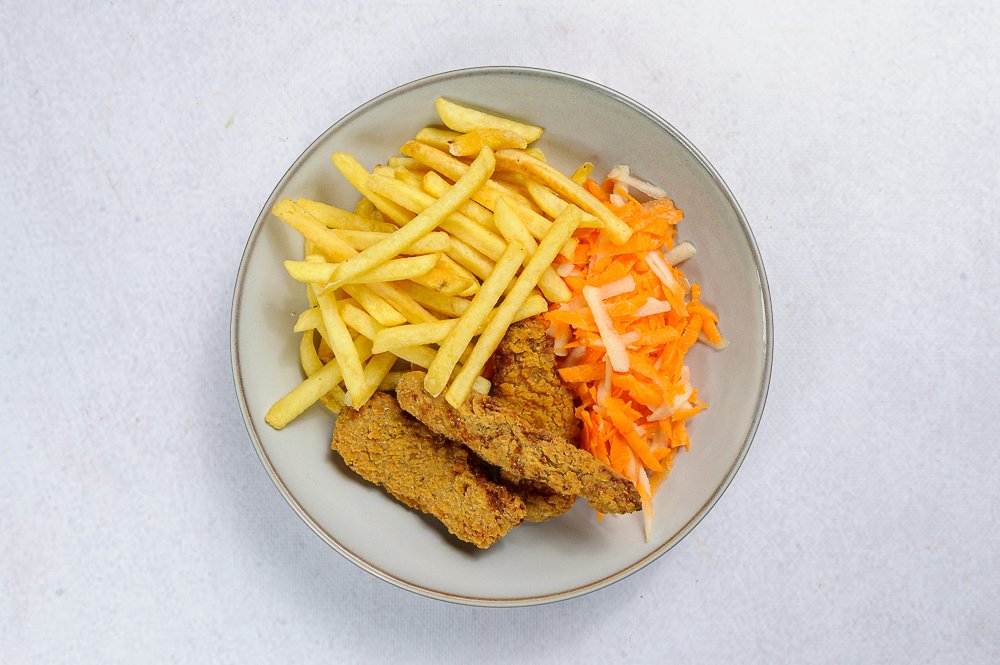 Frytki, surówka z marchewki