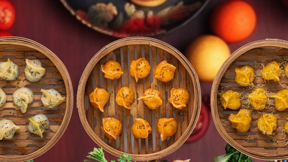 (1) Jiaozi z kurczakiem hoisin z pak choi 2 szt. (2) Jiaozi z wołowiną chili 2szt. (3) Jiaozi z wieprzowiną i krewetkami 2 szt. (4) Jiaozi ze szpinakiem i serem 2 szt. (5) Jiaozi z wieprzowiną i kolendrą 2szt.