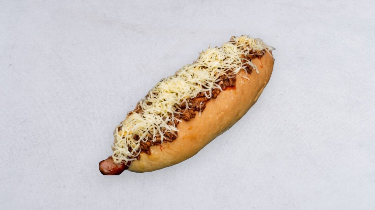 Firmowy, parówka, sos "Coney Island" (wołowinka w tomatach), ser żółty