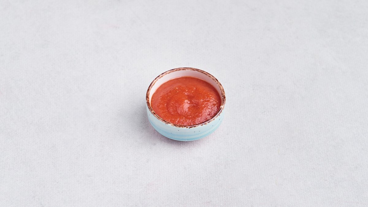 Sos firmowy, parówka, surówka z kapusty białej, ketchup, majonez, musztarda, pietruszka