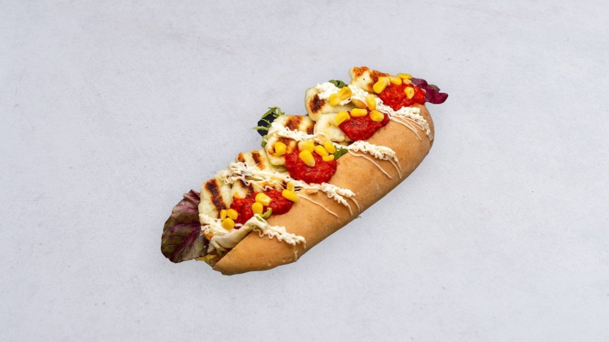 Sos firmowy, cebulka marynowana, sałaa lodowa,majonez, ser halloumi grillowany, ajvar, majonez,cebula żółta piklowana