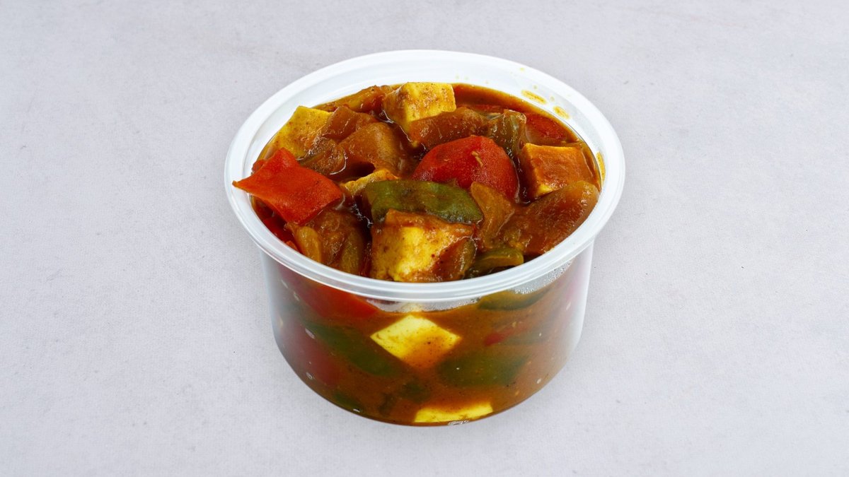 Smażony indyjski ser podawany ze smażoną cebulą i papryką, doprawiony świeżym chili. Podawane z ryżem Basmatii i Paratha (Indyjskim chlebkiem).