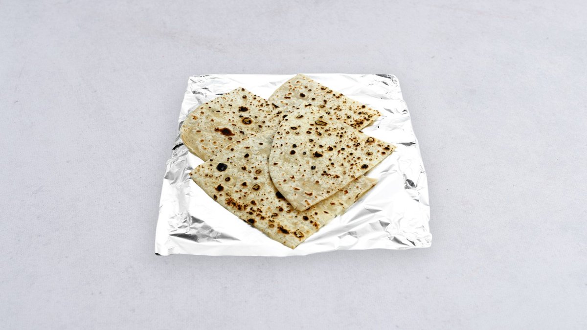 Indyjski świeży chleb, kurczak, sos maślano-pomidorowy, warzywa, kolendra