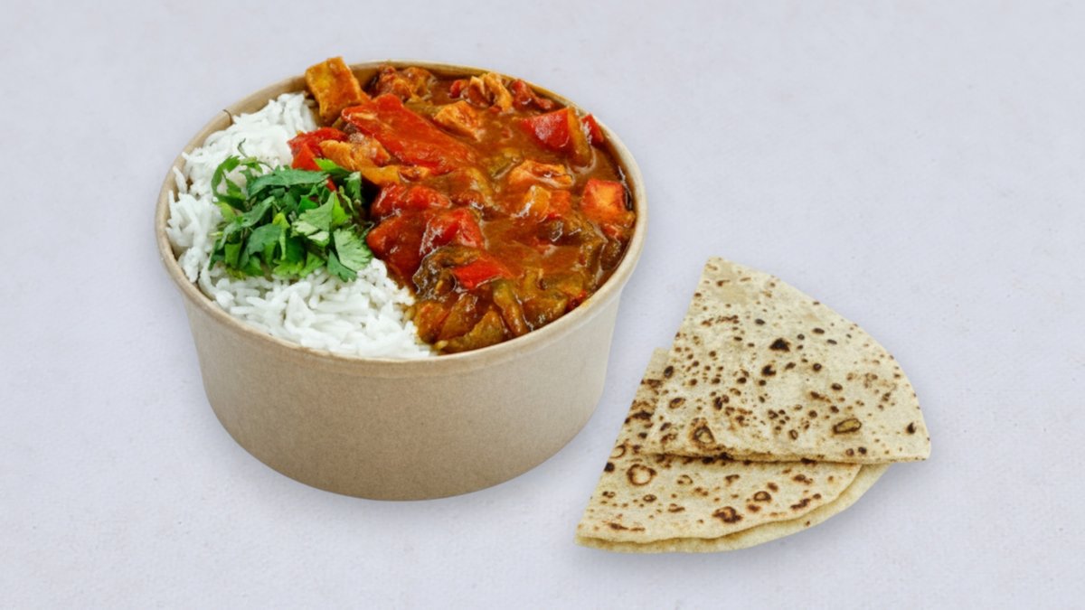 Smażone kawałki kurczaka podawane ze smażoną cebulą i papryką doprawione świeżym chili. Podawane z ryżem Basmatii i Paratha (Indyjskim chlebkiem).
