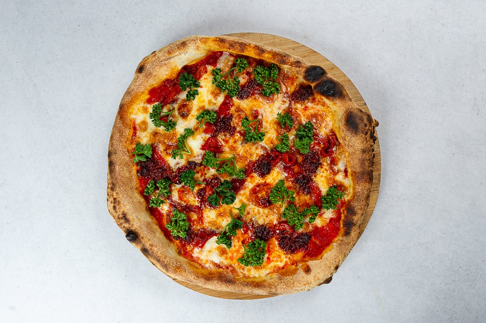 Serwujemy pizzę w typie neapolitańskim. Ciasto przygotowujemy na miejscu według autorskiego przepisu, które garuje minimum 12 godzin, a po kulkowaniu czeka kolejne 12 godzin zanim trafi do pieca... a potem do Ciebie. Wszystkie pizze mają średnicę 32 cm