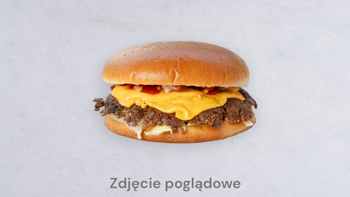 Z wołowiną, serem cheddar, sałatą, pomidorem, ogórkiem, czerwoną cebulą i 2 sosami do wyboru