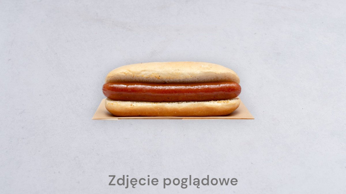 Kiełbasa wieprzowa z grilla 180 g, bułka, keczup, musztarda, prażona cebula, szczypiorek