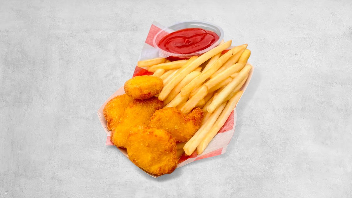 Chrupiące nuggetsy 5 szt., frytki 200g i sos ketchup