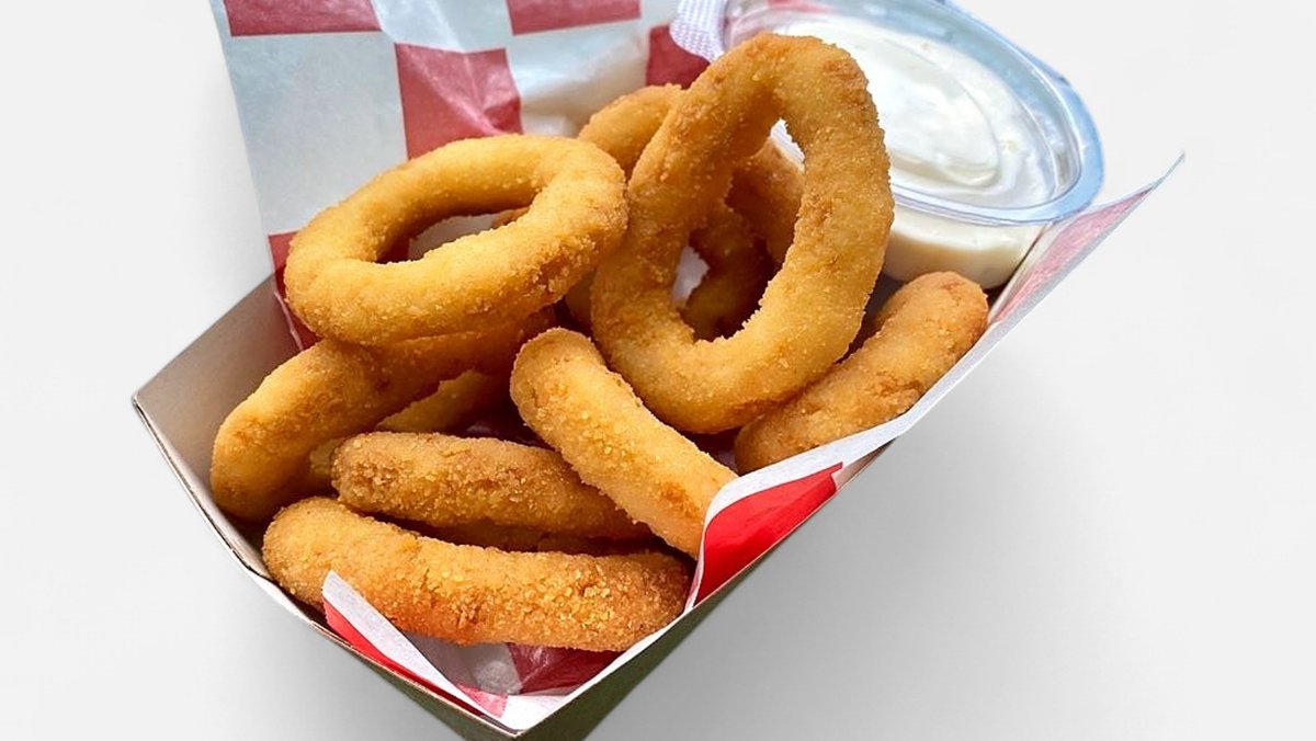 10 szt. Chrupiące krążki cebulowe panierowane 10 szt. z sosem czosnkowym
