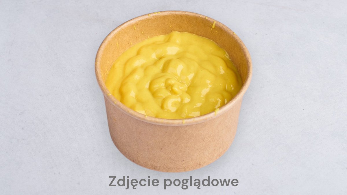 Kraftowa kiełbasa wieprzowa, sos firmowy, domowa bułka, fryteczki, ketchup, sos majo