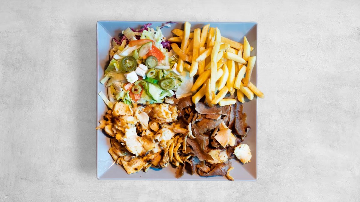Mięso, frytki, surówka, sos