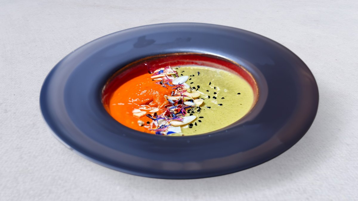 Dwie zupy krem na jednym talerzu