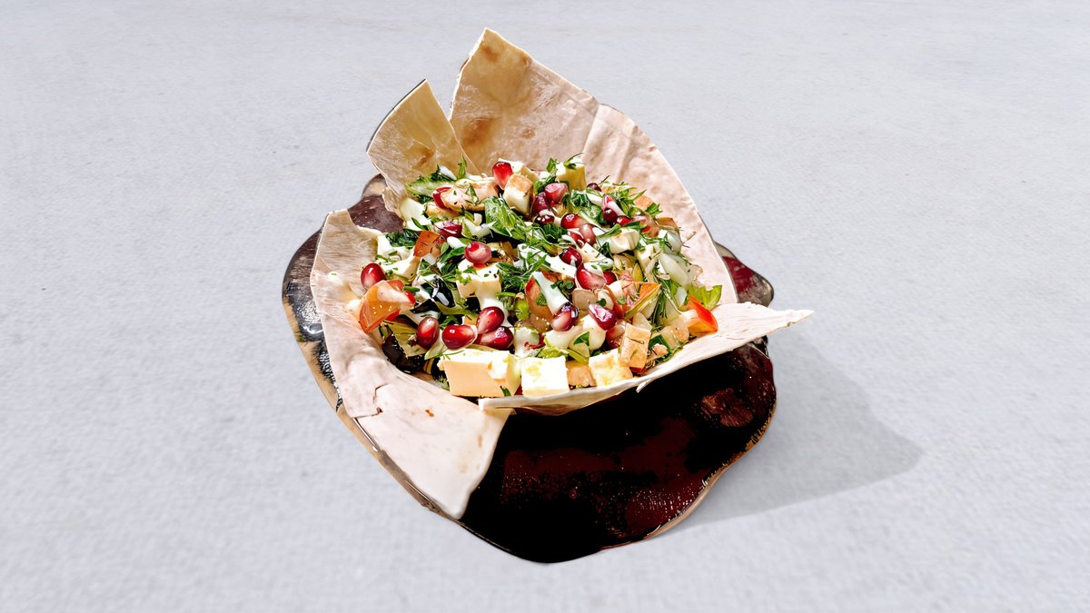 250 g. Ogórek, papryka, pomidor, czerwona cebula, ostra papryka, granat, kolendra z sosem z granatów podawane z pieczonym chlebkiem lavash w przyprawach kaukaskich