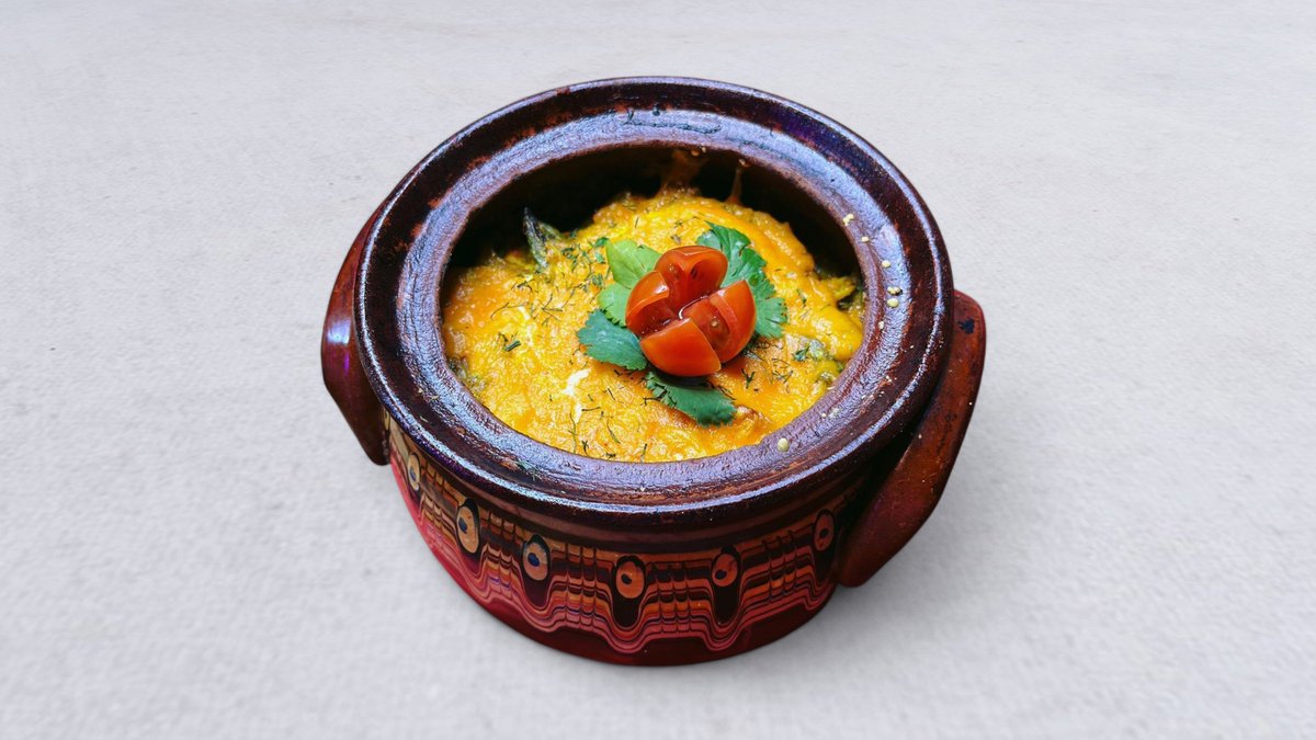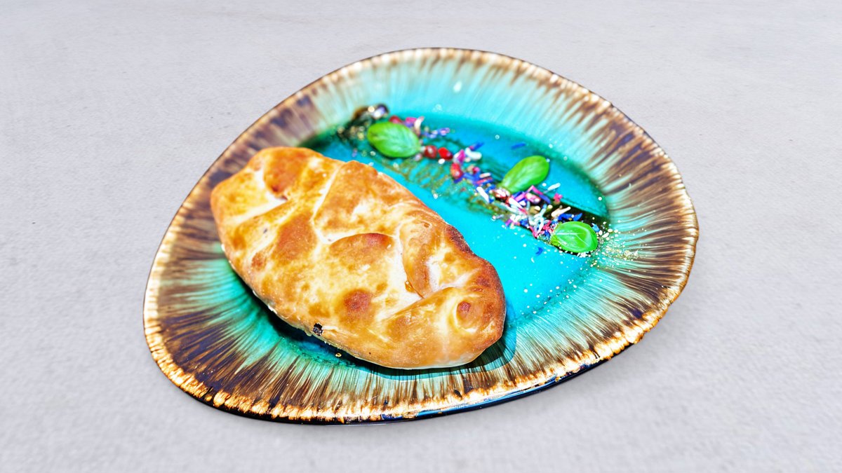 Zapiekany pieróg z pastą z fasoli, orzechami włoskimi, serem i przyprawami kaukaskimi