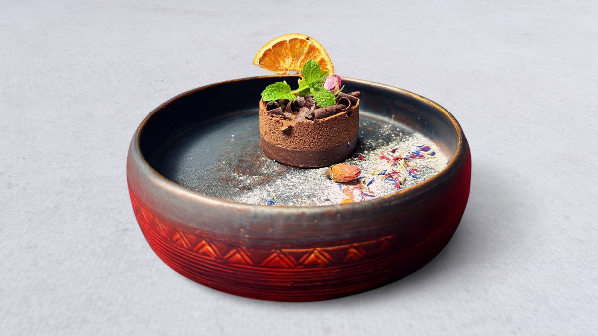 150g. Czekoladowy mus podawany z krążkami czekoladowymi
