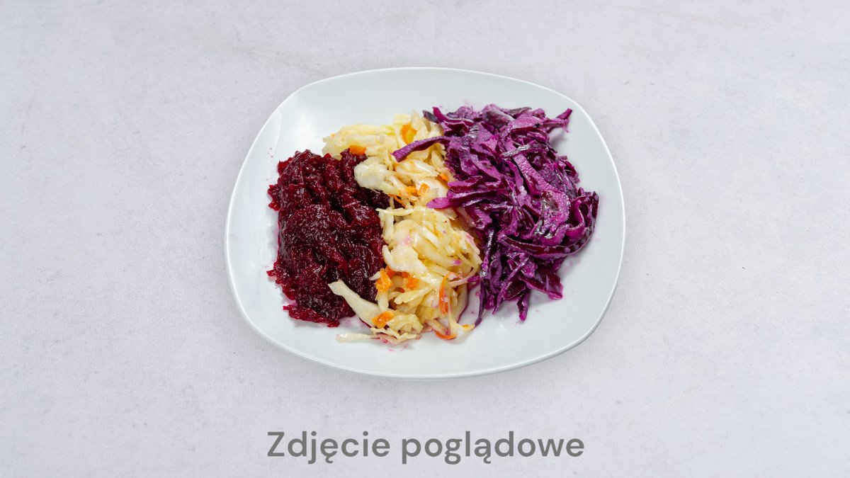 Surówka z białej kapusty z oliwą, buraczki tarte, marchewka z oliwą