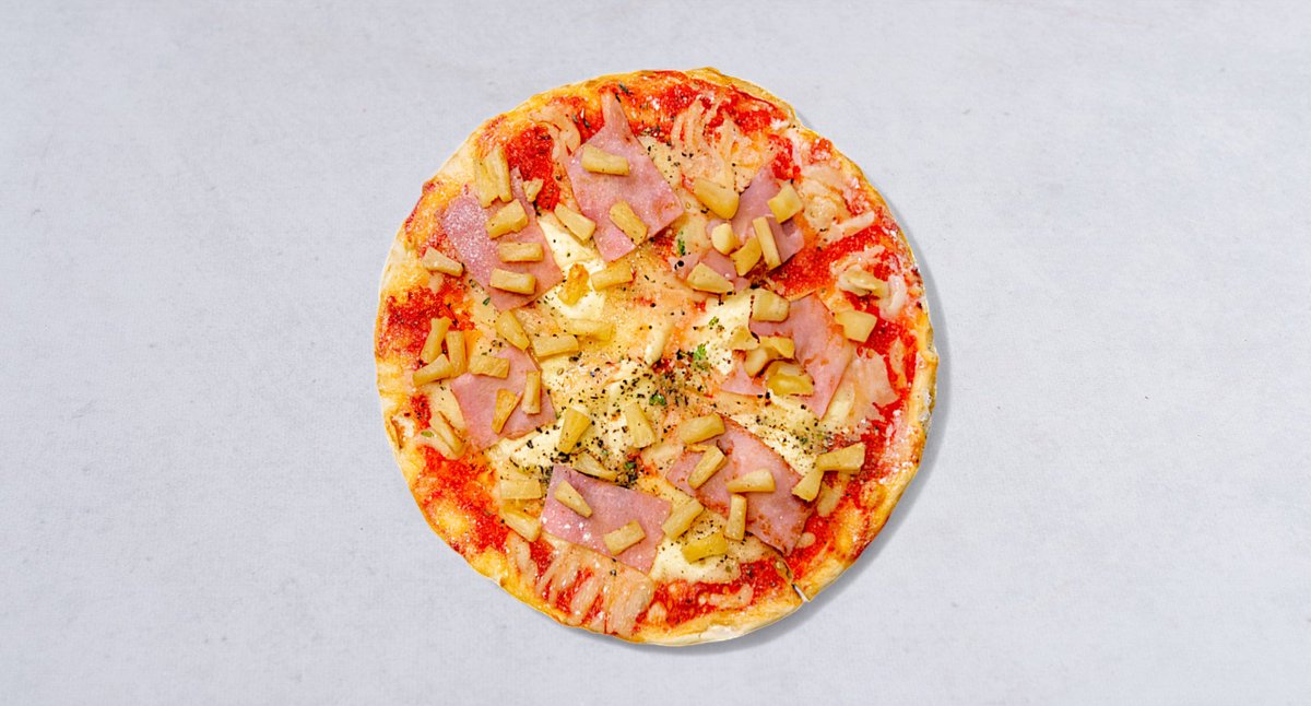 Sos, ser, ananas, szynka, oregano