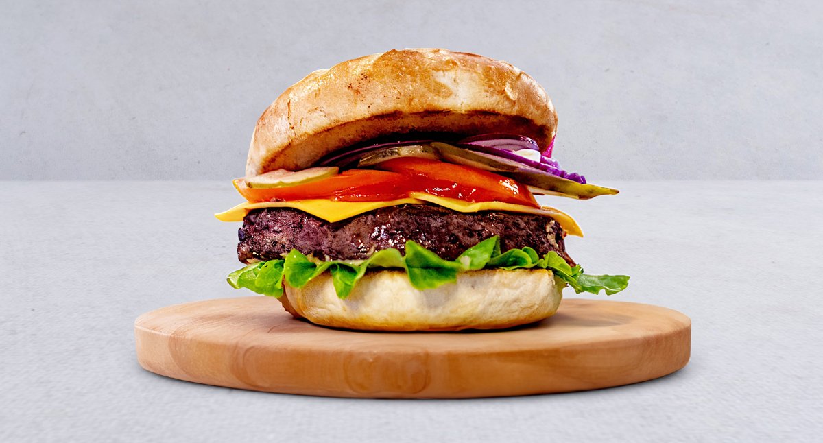 Wołowina, ser cheddar, pomidor, cebula, ogórek kiszony, sałata, ketchup, majonez